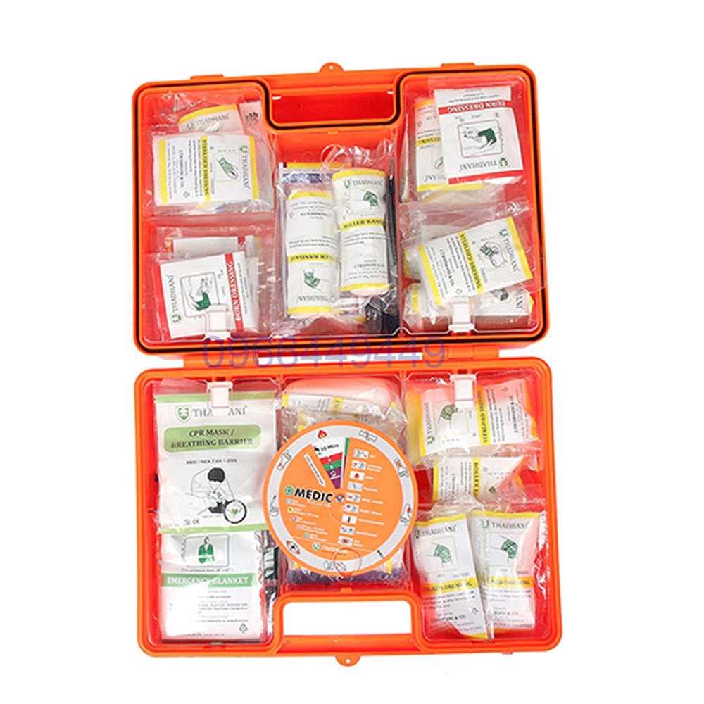 1 First Aid Kit Box , 1 First Aid Guide Book, 1 Scissors, 1 Snake Bit Lancet, 20 Wound Cleaning Antiseptic Wipes, 15 Tincture – Povidone Wipes, 2 Cotton Wool(15gm), 1 Adhesive Plaster(Small), 4 Small Sterilized Dressing, 4 Medium Sterilized Dressing, 4 Large Sterilized Dressing, 4 Large Sterilized Burn Dressing, 4 Sterilized Eye Pad In Sealed Pocket, 1 Eye Wash Pods, 1 Tourniquet, 12 Safety Pins, 3 Roller Bandage – Medium 5cmx2mtr, 3 Roller Bandage – Large 10cmx2mtr , 2 Triangular Bandage, 1 Burn Ointment, 1 Cpr Mask, 1 Instant Cold Pack, 12 Adhesive Bandages, 1 Burn Rescue Blanket, 2 Disposable Gloves(1 Pair), 1 Muscle Relaxant Ointment, 2 Gauze Pad 5 Cm, 2 Gauze Pad 7.5 Cm